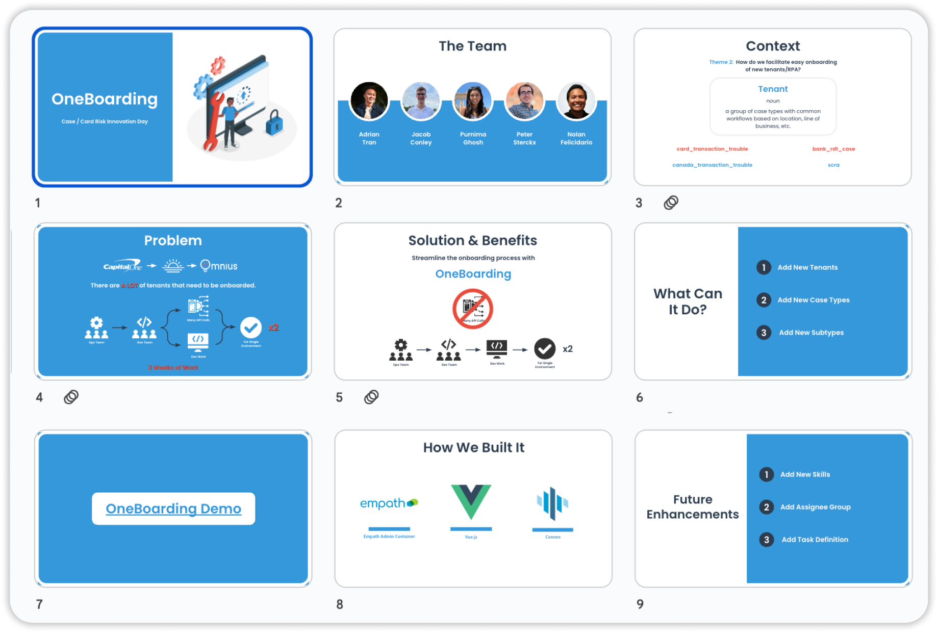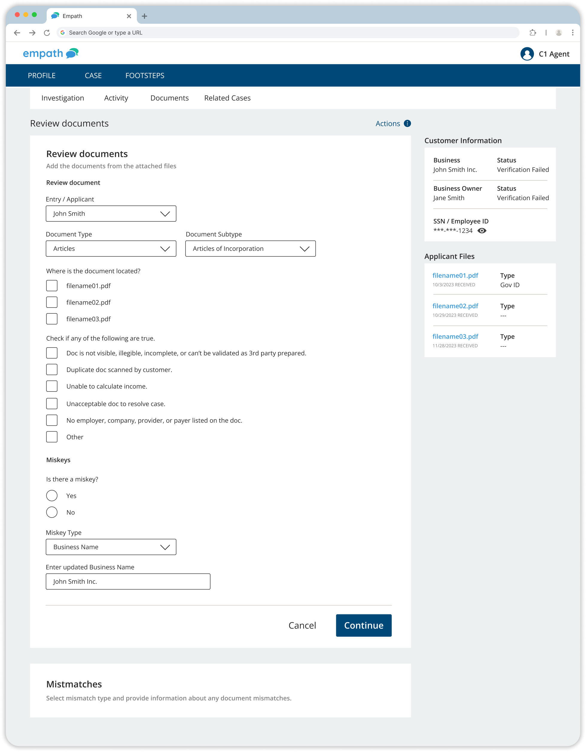 Capital One is a financial services company specializing in banking, credit cards, loans, and other financial products and services. I worked within the customer servicing space on Empath, the platform that thousands of agents use to triage issues and look up information for millions of customers.